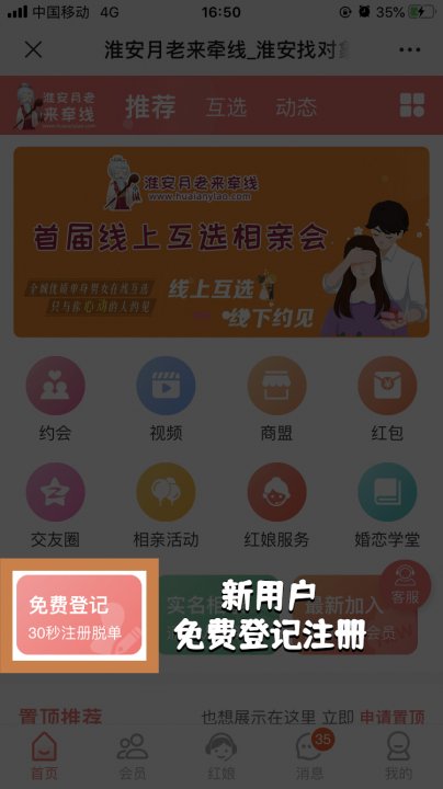 (1)新用户进入“缘分大厅”首页后,在首页点击“免费注册”