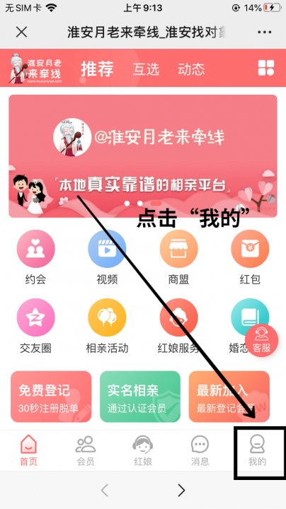通过淮安月老工作室进入“缘分大厅”-“我的”-“个人中心”-“登陆”后,即可正常使用平台